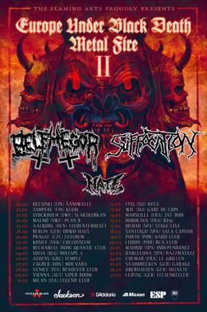 Auf ihrer Mission werden BELPHEGOR und SUFFOCATION von HATE begleitet. Die Bands suchen größtenteils jene Orte heim, die vom ersten Teil der "Europe Under Black Death Metal Fire" Tournee nicht abgedeckt wurden.